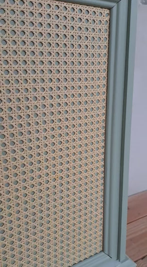 Diese besondere Kommode vereint zeitloses Design mit natürlicher Ausstrahlung. Der zarte Mintton bringt Frische und Ruhe in jeden Raum und harmoniert hervorragend mit dem warmen Naturton des Rattans. Die beiden Türen sind mit originalem Rattangeflecht versehen und sorgen für eine luftige, leichte Optik.